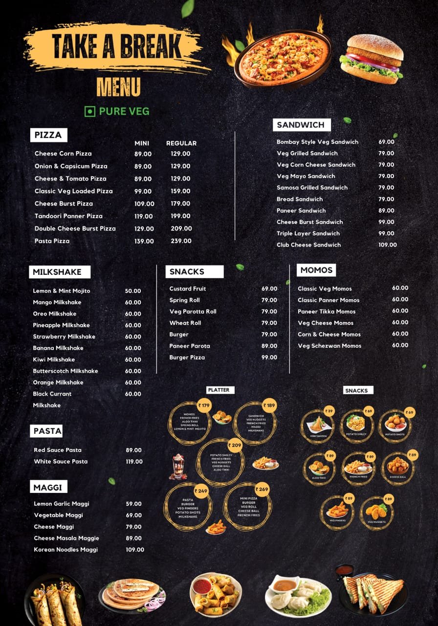 Welcome to Take A Break — your go-to spot for delicious snacks made fresh every day! We believe that everyone deserves a tasty break from the hustle and bustle of life. Whether you’re craving a cheesy pizza, a loaded sandwich, a juicy burger, or something new, we’ve got you covered.